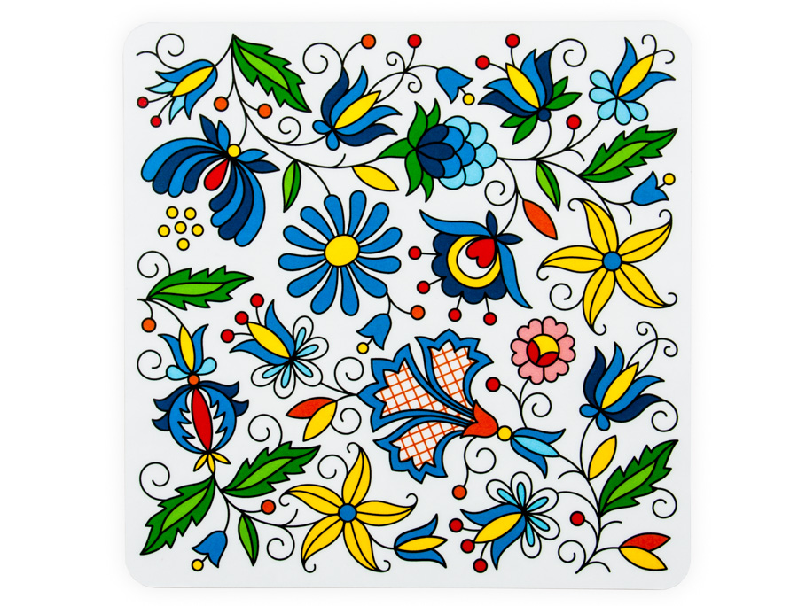 Folk podkładka pod mysz z motywem haftów kaszubskich: zdobienia stylizowane na ludowo,podkładka pod mysz kaszubska zachwyca intensywną gamą kolorów,barwne folkowe wzory inspirowane tradycyjnymi haftami kaszubskimi,tradycyjne wzory folk z regionu kaszubskiego połączone w jedną niespotykaną i oryginalną kompozycję,ludowa podkładka pod mysz dostosowana do wszystkich rodzajów myszek,wierzch - odporna na ścieranie powłoka, spód - antypoślizgowa pianka