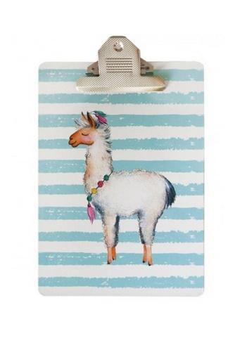 Podkładka do pisania z klipsem z formacie A4 z modnym letnim nadrukiem lamy. Stylowy element wyposażenia biura.
