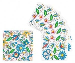 Zapakowane w ozdobne pudełko podkładki pod kubek w kaszubskie wzory ludowe. Podkładkę pod kubek zdobią kwiatki podobne do tych, jakie znajdują się na haftach kaszubskich. Wzór na ludowych podkładkach inspirowany jest tradycyjnym wzorem ludowym z regionu kaszubskiego. Elementem przewodnim kaszubskich wzorów są motywy bratków, lilii, niezapominajek, dzwonków, goździków, chabrów, koniczynek i róż zaczerpniętych z okolicznej przyrody, ale znajdują się także kwiaty zaczerpnięte z obczyzny. Istnieje wiele szkół haftu kaszubskiego, których elementy można znaleźć w produktach zaprojektowanych przez Folkstar.