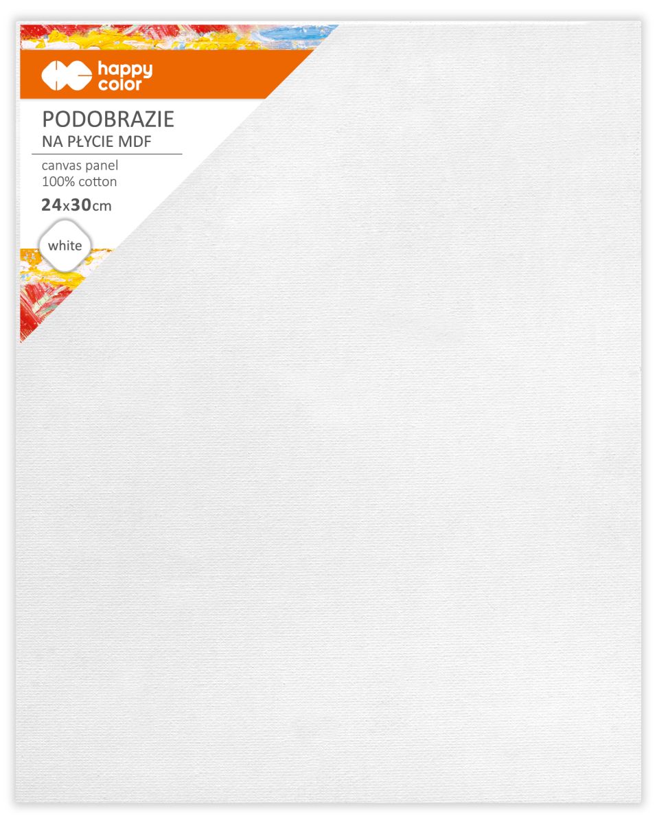 Podobrazie bawełniane 24 x 30 cm, impregnowane białe, MDF 4 mm, Happy Color.
