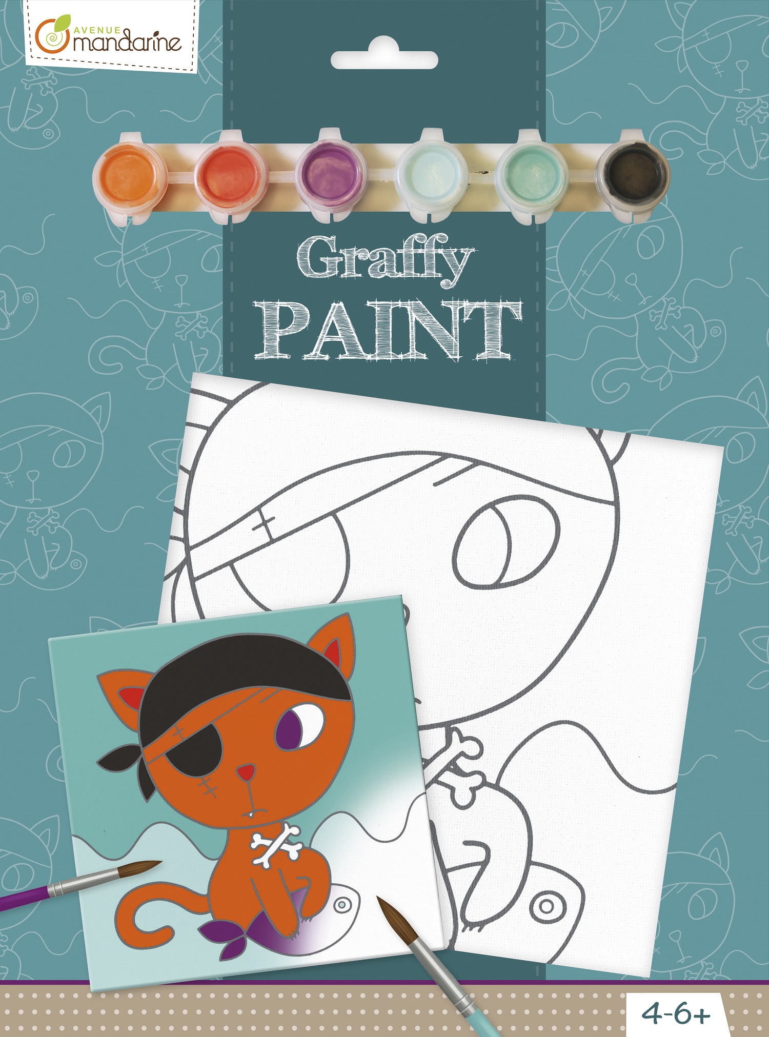 Podobrazie z nadrukiem + farbki + pędzel - Kot pirat 20x20 cm