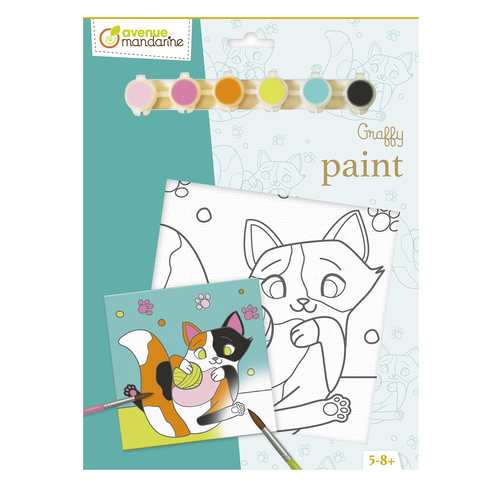 Podobrazie z nadrukiem + farby + pędzel - Kot 20x20 cm