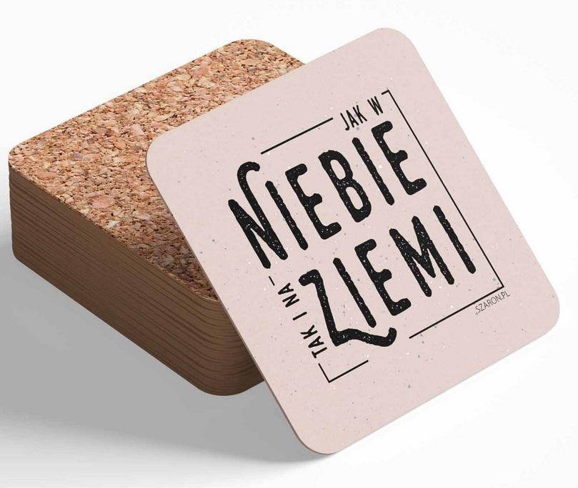 Podstawka zawiera tekst: Jak w niebie taki i na ziemi
