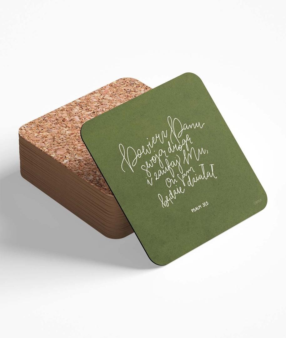 Podkładka korkowa - Psalm 37,5 (Zielone tło, odręczny tekst)