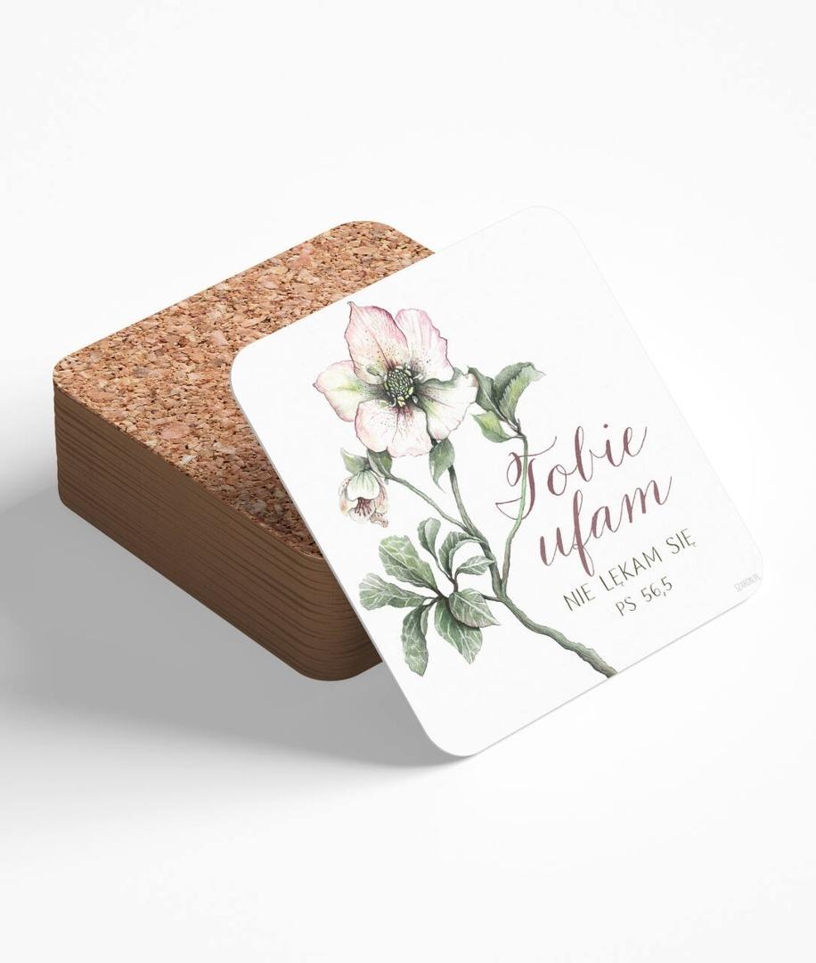 Podkładka korkowa pod kubek z cytatem biblijnym - "Tobie ufam, nie lękam się" (Ps 56,5)