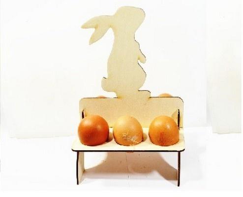 Składane stabilne podstawki pod 6 jajek wykonane ze sklejki grubości 3mm, dają się łatwo złożyć i postawić.Nie wymagają sklejania. Opakowanie zawiera 4 elementy : Motyw tego zestawu : Królik Kod : SKL-Z605