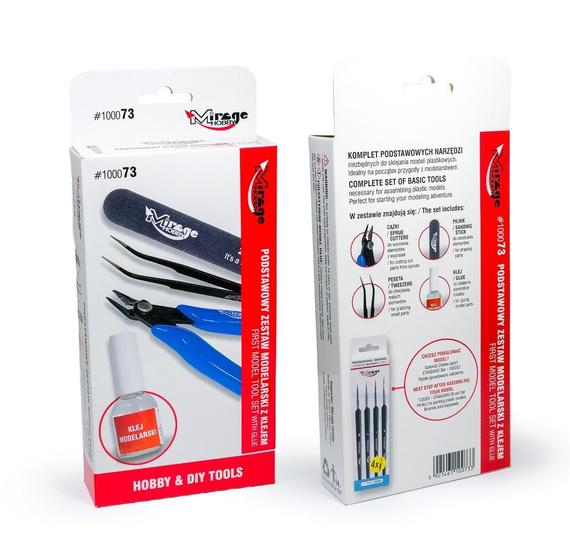 Mirage Hobby Podstawowy zestaw modelarski z klejem (nr kat. 100073) to kompletny pakiet narzędzi niezbędnych do rozpoczęcia przygody z modelarstwem plastikowym. Zestaw został przygotowany z myślą o osobach początkujących, ale sprawdzi się również jako wygodny zestaw startowy dla każdego, kto chce mieć pod ręką najważniejsze akcesoria do budowy modeli. W jednym opakowaniu znajdują się narzędzia potrzebne do wycinania części z ramek, ich obróbki oraz trwałego sklejania w gotowy model. W skład zestawu wchodzą: Cążki modelarskie (sprue cutters) - Precyzyjne narzędzie do wycinania części z ramek. Ostre ostrza pozwalają na czyste, kontrolowane cięcie bez uszkadzania detali. Pęseta modelarska (tweezers) - Niezastąpiona przy pracy z małymi elementami. Ułatwia chwytanie i precyzyjne ustawianie drobnych części modelu. Pilnik / patyczek ścierny (sanding stick) - Służy do wygładzania miejsc po wycięciu elementów oraz dopasowywania części przed klejeniem. Klej modelarski - Przeznaczony do sklejania plastikowych elementów modeli. Zapewnia trwałe i mocne połączenia. Zestaw nr 100073 od Mirage Hobby to idealny wybór dla osób rozpoczynających hobby, młodszych modelarzy pracujących pod nadzorem dorosłych, a także jako praktyczny prezent dla miłośnika modeli plastikowych.