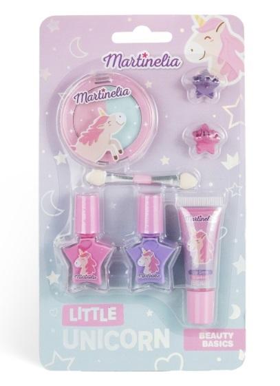 Zestaw dla dzieci zawiera 2 lakiery do paznokci, 1 błyszczyk, cień do powiek (2 kolory), 2 spinki do włosów i 1 aplikator.