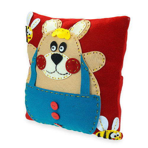 zabawka kreatywna Smykałka to produkty z dziedziny zrób to sam, które gwarantują wspaniałą zabawę, uczą, bawią, rozwijają i są w 100% bezpieczne. Rozwija umiejętności manualne oraz kreatywność. Wzmacnia relacje, to po prostu świetna wspólna zabawa. PODUSIE MILUSIE Poduszka wykonana z połączenia miękkiego filcu z przodu i wysokiej jakości polaru z tyłu. Dzięki połączeniu tych materiałów Podusia ma dwojakie zastosowanie: udekorowany przód może być ozdobą każdego pomieszczenia, a przyjemny w dotyku tył może służyć do spania. • Rozmiar: 30cm x 30cm • Dostępność produktów: Podusia Kwiatusia, Podusia Misia Miodka, Podusia Królika Ząbka, Podusia Pychotka • Każdy produkt wykonany jest z bardzo miękkiego, przyjemnego w dotyku, 2mm filcu • Dopracowane szczegóły oraz estetyczne połączenie kolorystyczne sprawiają, że produkt może być nie tylko zabawką, ale również ozdobą każdego pomieszczenia • Wszystkie elementy do wykonania produktu znajdują się w zestawie (elementy filcowe z otworami ułatwiającymi szycie, elementy filcu samoprzylepnego, wypełnienie, elementy dekoracyjne, plastikowa igła, itp.) • Szczegółowa instrukcja, pokazująca wykonanie zabawki krok po kroku pozwala na jej stworzenie nawet tym, którzy dopiero rozpoczynają swoją przygodę z szyciem