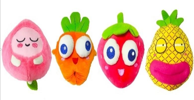 Miękka poduszka przytulanka w kształcie brzoskwini.