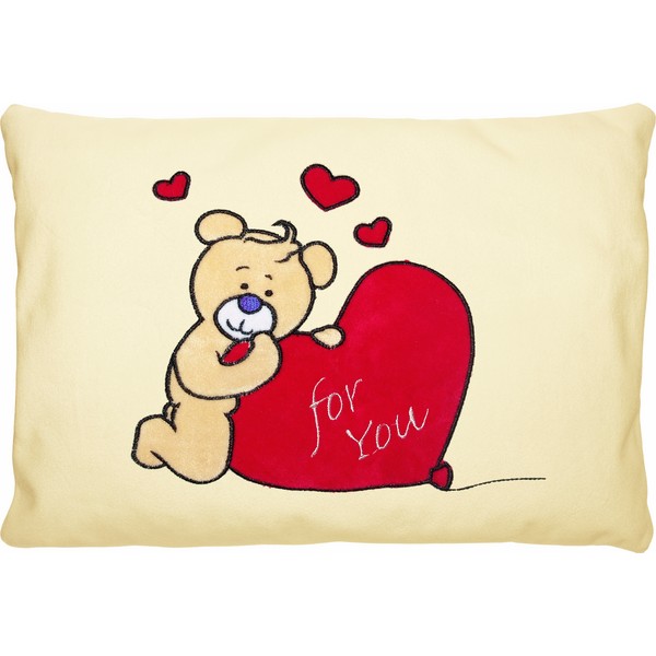 Milutka pluszowa podusia.Wyhaftowany miś z serduszkeim napis For You.Rozmiar 23x34cm .