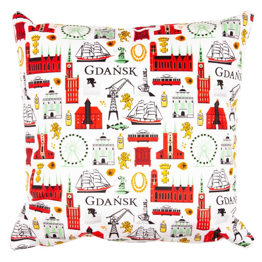 Dekoracyjna poduszka miastowa - Gdańsk symbole: puszysta, miękka i miła w dotyku,poszewka wykonana z delikatnej microfibry,posiada zapięcie na zamek błyskawiczny,nadruk dwustronny,wewnątrz wymienny wkład z poliestru,miastowa poduszka nada wyrazu i uroku każdemu wnętrzu,
