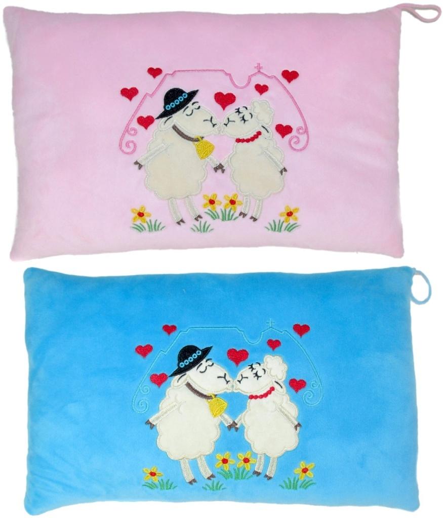 Poduszka prostokątna z motywem owieczki i baranka. Poduszka dostępna w 2 kolorach. Cena za sztukę.