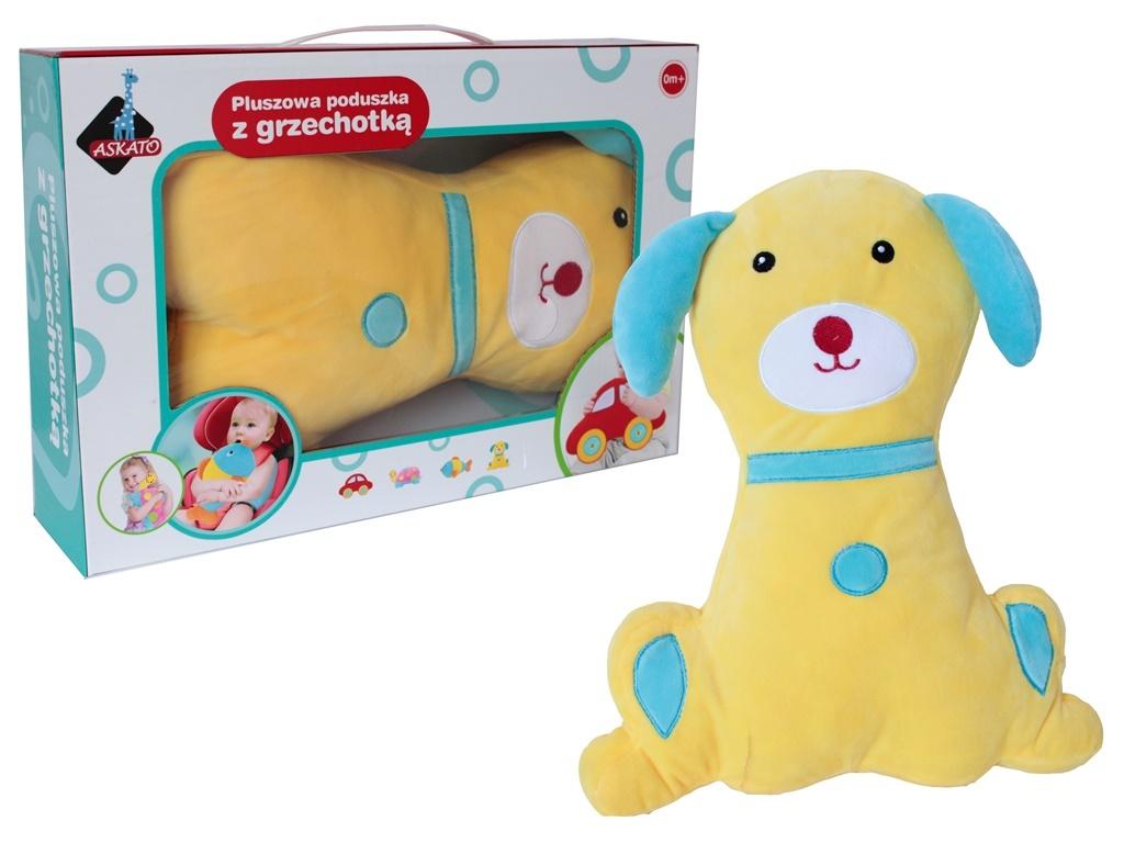 Miękka, pluszowa poduszeczka, która może służyć jako poduszka lub pierwsza przytulanka malucha. Oprócz wrażeń dotykowych, które są niezwykle istotne przy rozwoju integracji sensorycznej, poduszka ma wszystą grzechotkę, która stymuluje wrażenia słuchowe. Zabawka bez ograniczeń wiekowych.
