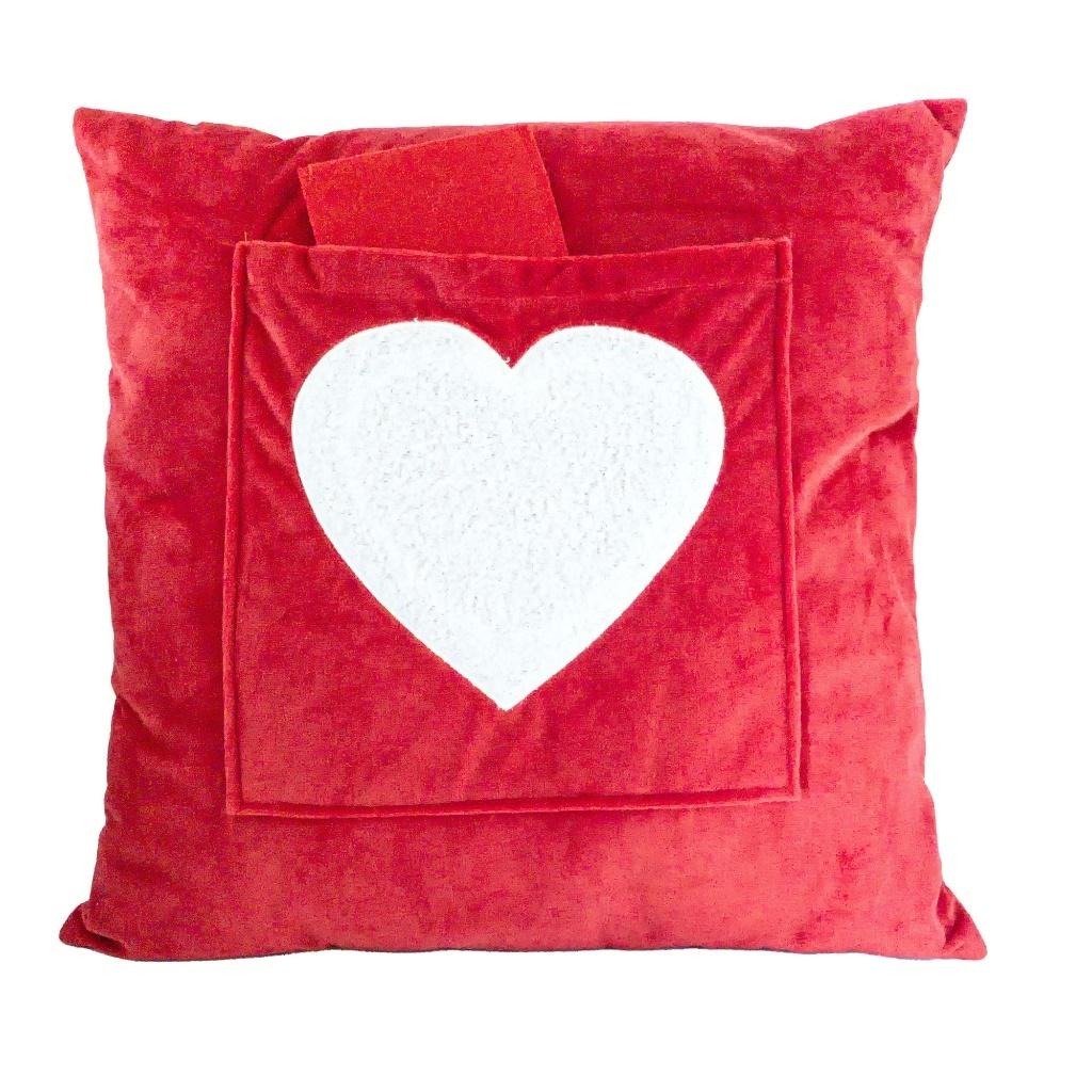 Poduszka z wyszytym sercem na kieszonce + kopertą na liścik. Czerwona