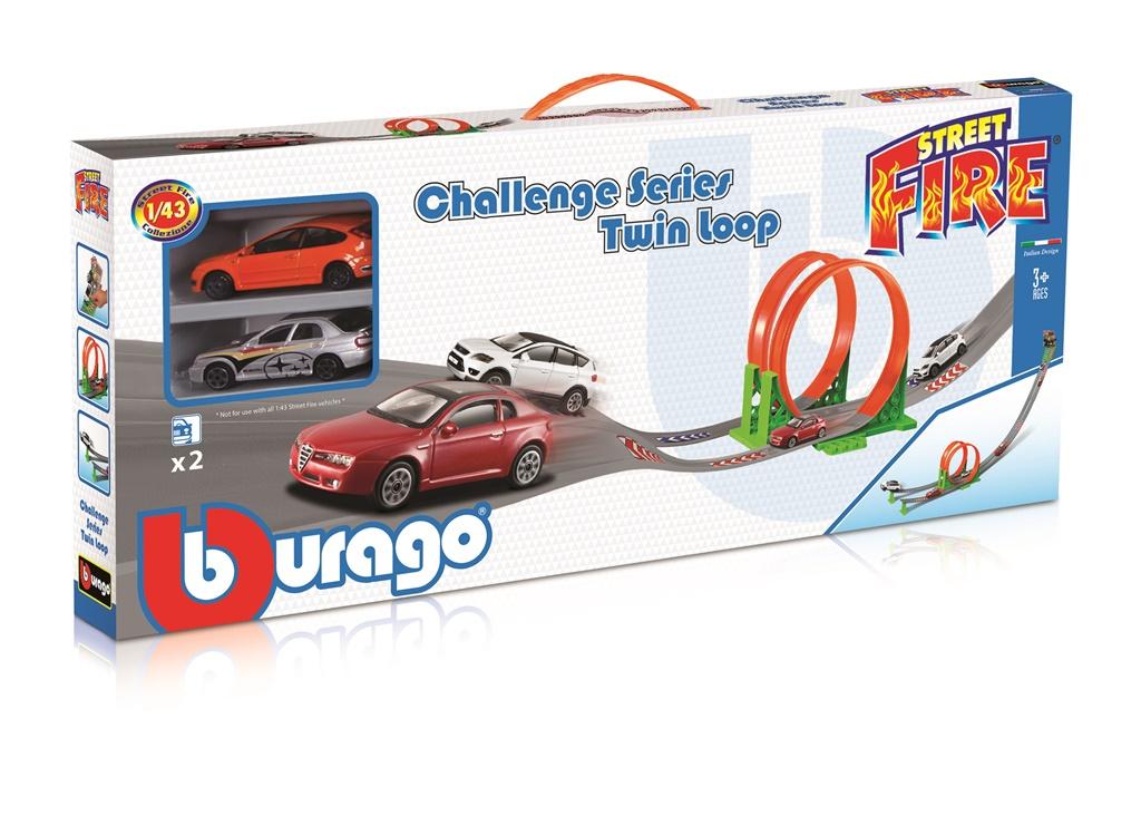 Idealny tor wyścigowy da małych miłośników motoryzacji. Niesamowitą zabawę zapewnią dwie pętle oraz dwie wyrzutnie Bburago.