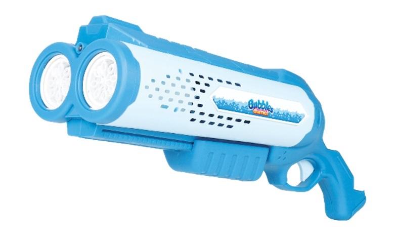 Podwójnie dobra zabawa z dwa razy większą ilością baniek! Wyrzutnia posiada aż dwie lufy, a do tego wyposażona jest w światełko, które tworzy lekko niebieską poświatę. Aby rozpocząć zabawę wkręć buteleczkę z płynem do nakrętki z wężykami, znajdującej się w górnej części wyrzutni. Następnie przytrzymaj dłużej spust i ciesz się podwójnym strumieniem baniek. Zabawka przeznaczona jest do używania na świeżym powietrzu. Płyn można dokupić oddzielnie w dwóch pojemnościach do wyboru.