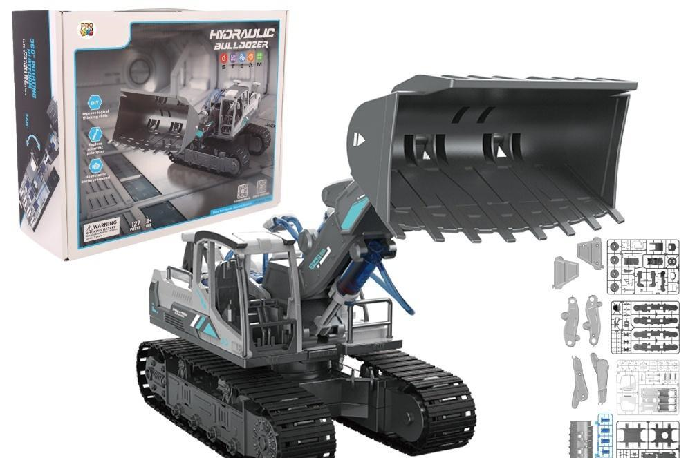 Przenieś się do świata wielkich maszyn i inżynierskich wyzwań z wyjątkowym zestawem do samodzielnego montażu hydraulicznym buldożerem, który naprawdę działa! Ten nowoczesny model to coś więcej niż zabawka to edukacyjna przygoda, która rozwija wyobraźnię, zdolności techniczne i zmysł konstrukcyjny. Zbudowany z 121 elementów, buldożer wyposażony jest w prawdziwy system hydrauliczny, umożliwiający sterowanie ruchomą łyżką oraz ramieniem bez użycia baterii wszystko działa dzięki energii płynącej z Twoich rąk.