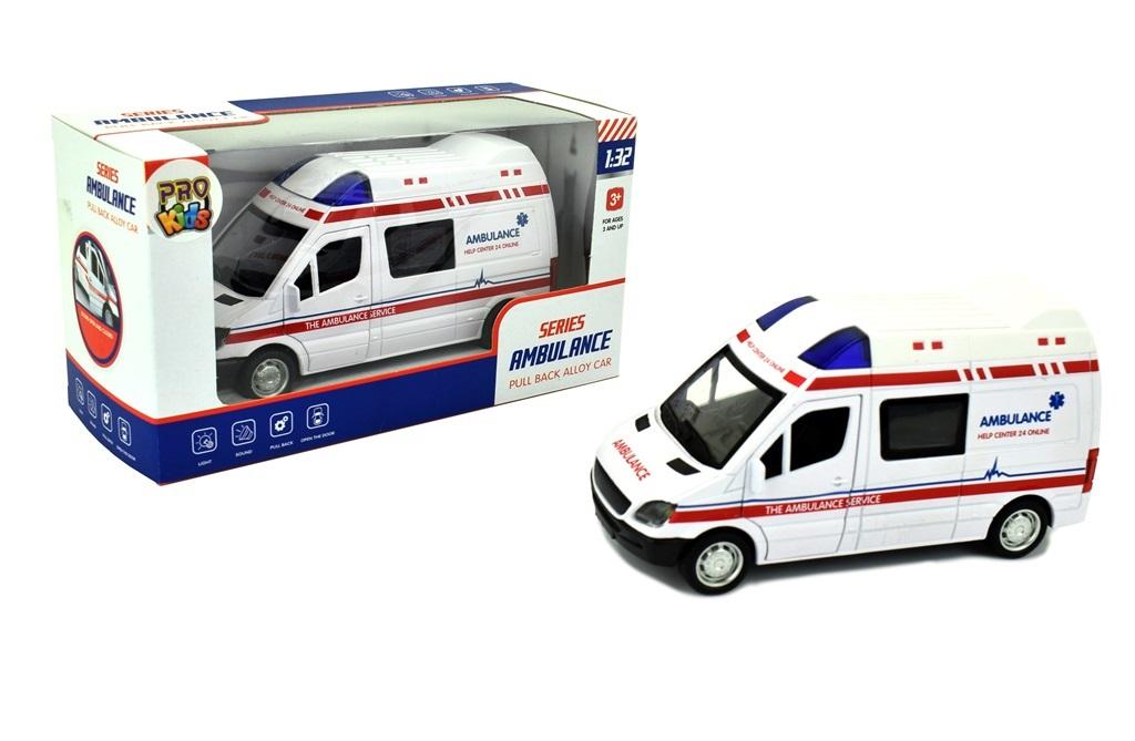 Ambulans to samochód ratunkowy wykonany z metalu, dzięki czemu jest solidny i wytrzymały. Ambulans 15 cm posiada napęd, a po ruszeniu włącza się syrena oraz światła. Samochód posiada otwierane drzwi kierowcy, pasażera oraz bagażnik.