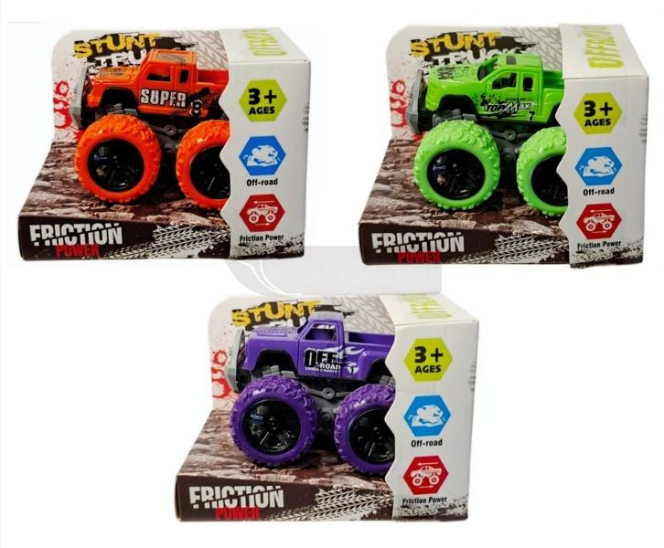 Pojazd terenowy z dużymi gumowymi kołami i napędem na tarcie. Kolor wybierany losowo. Cena dotyczy jednej sztuki. Zapakowany w kartonowe pudełko. Zabawka przeznaczona dla dzieci od lat 3. Podane wymiary stanowią wymiary opakowania.