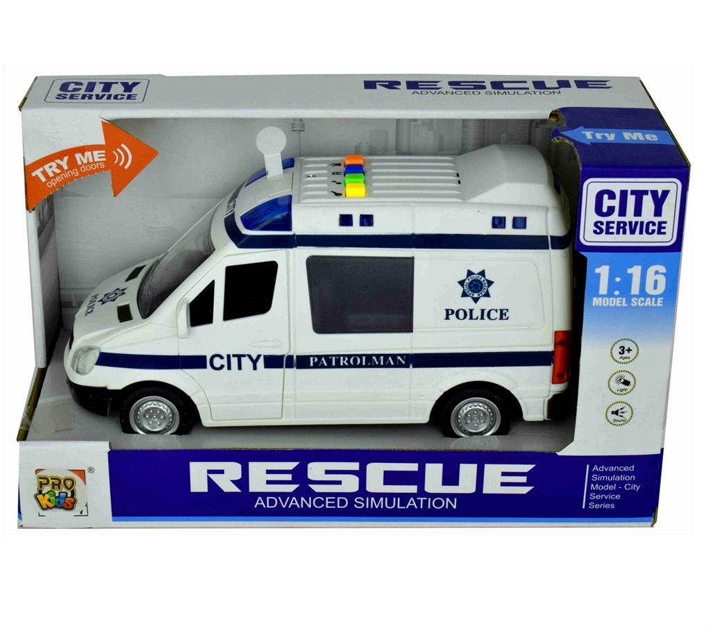 Pojazd z funkcjami głosowymi i światłem. Opakowanie otwarte z funkcją try me pozwala na wypróbowanie produktu na półce sklepowej. Przy zabawie możesz odtworzyć dźwięk odpalania auta, jazdy syren policyjnych oraz alarmu samochodowego.