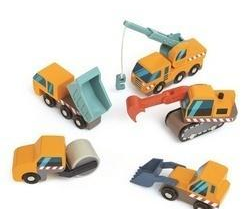 Drewniane pojazdy budowlane, Tender Leaf Toys Przenieś się na plac budowy z naszym zestawem pojazdów! Zestaw pięciu pojazdów budowlanych takich jak koparka, dźwig, walec drogowy, ciężarówka i spycharka! Wszystko co jest potrzebne na placu budowy! Realistyczne kolory pojazdów oraz ruchome elementy sprawią, że nasz zestaw będzie wspaniałą zabawką dla małych miłośników motoryzacji! Pojazdy pasują również do torów naszych kolejek drewnianych. Nasze zabawki produkowane są z drzewa kauczukowego, pochodzącego z kraju położonego na 13 tysiącach rajskich wysp - Indonezji. Do ich pomalowania użyliśmy bezpiecznych i delikatnych farb, dzięki czemu drewno zachowało swój naturalny wygląd i widoczną strukturę. Drewno kauczukowe cechuje się wyjątkową wytrzymałością, co jest niewątpliwym atutem zabawek Tender Leaf Toys. W trosce o naturę, w miejsce każdego drzewa wykorzystanego do produkcji zabawek Tender Leaf Toys, sadzimy nowe drzewo. W Tender Leaf Toys dbamy o zrównoważony rozwój planety i ochronę środowiska naturalnego. Zabawki Tender Leaf Toys tworzone są z myślą o najmłodszych przez brytyjską projektantkę Danielle Hanson, która od lat związana jest z branżą dziecięcą. Dzięki jej doświadczeniu, pasji i niezwykłej wyobraźni, zabawki marki Tender Leaf Toys pięknie odwzorowują detale otaczającego nas świata, jak również dbają o rozwój zdolności manualnych i poznawczych dzieci. Wszystkie etapy produkcji zabawek Tender Leaf Toys odbywają się w jednym miejscu, z najwyższą dbałością o środowisko - w egzotycznej Indonezji, kraju słynącym z poszanowania dla własnej kultury i zasobów naturalnych.