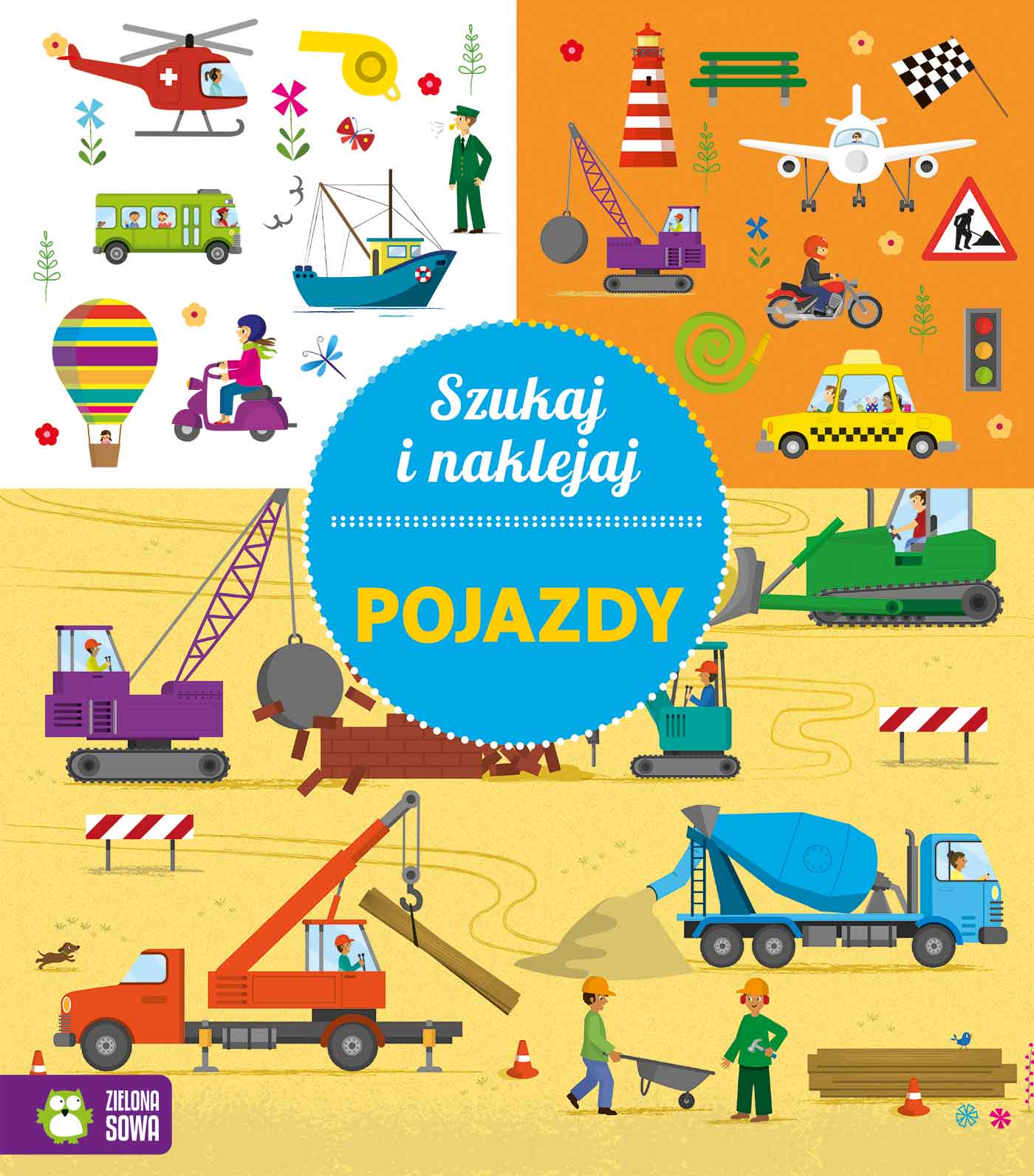 Wóz strażacki, koparka, ciężarówka, karetka sprawdź, czy znajdziesz wszystkie pojazdy na obrazku! Książeczki z kolorowymi ilustracjami i naklejkami. Dziecko poznaje pojazdy, zwierzęta, życie na wsi i przeróżne sprzęty, które można zobaczyć w domu. Na każdej stronie jest mnóstwo elementów do odszukania na dużej ilustracji. Dziecko odpowiada na zamieszczone obok niej pytania i przykleja naklejki we właściwych miejscach.