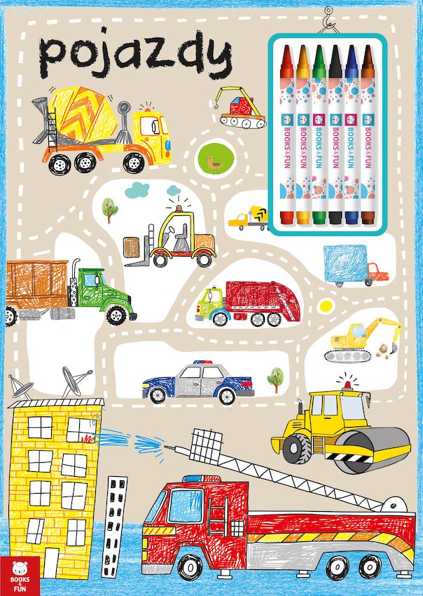 Samochody i maszyny budowlane czekają na stronach tej książeczki, abyście szybciutko je pokolorowały oraz rozwiązały zadania dla Was przygotowane. Chwytajcie za kredki dołączone do kolorowanki i do dzieła!