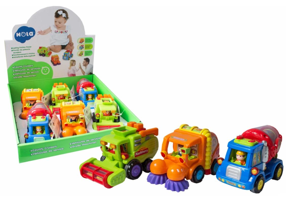 Pojazdy z napędem frykcyjnym, autko 12 cm, 3 wzory - betoniarka, kombajn, śmieciarka. Towar wysyłany losowo.