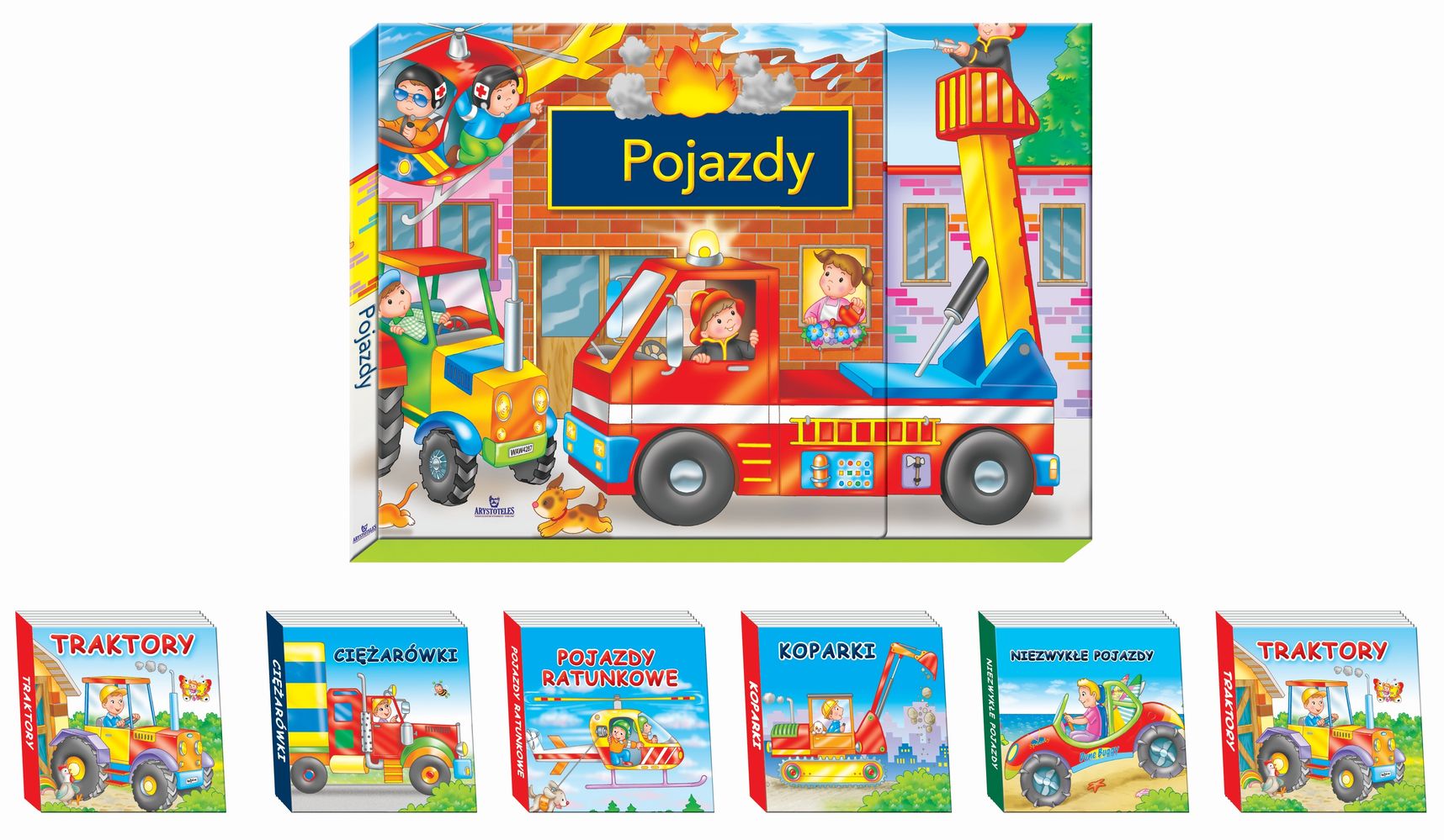 Przeczytaj krótkie historie, które rozpalą Twoją wyobraźnię. Dzięki nim poznasz niezwykły świat pojazdów. Pudełko zawiera sześć książeczek: Ciężarówki Pojazdy ratunkowe Niezwykłe pojazdy Traktory Koparki Pociągi