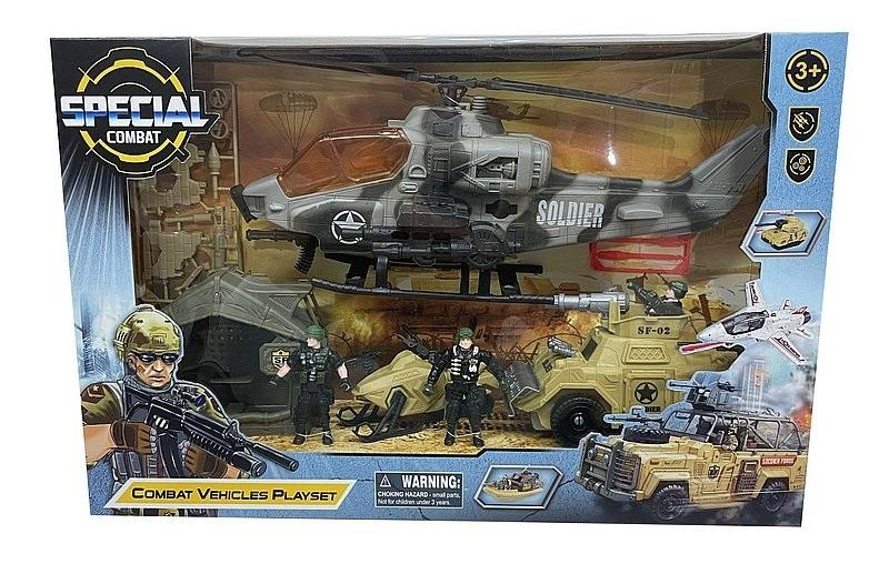 zestaw pojazdów wojskowych z figurkami; 56x37,5x13,5cm, W/B