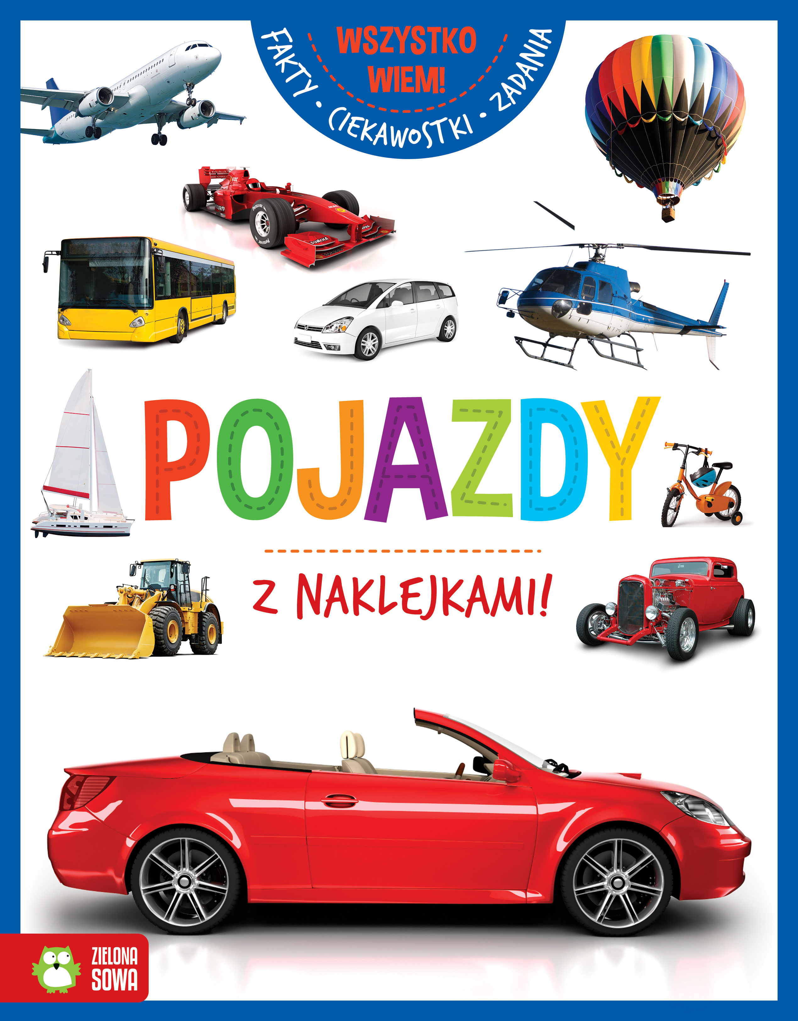 Pojazdy - fakty, ciekawostki i zadania! Wszystko wiem! to seria dla dzieci w wieku 6-8 lat. Najlepszą formą poznawania świata i budowania podstaw wiedzy dla dziecka w tym wieku jest zabawa. Dlatego proponujemy kreatywne książeczki edukacyjne o zróżnicowanej tematyce, która zainteresuje zarówno dziewczynki, jak i chłopców. Każda z książek nie tylko prezentuje bardzo ciekawe informacje, ale także zaprasza dziecko do aktywnej zabawy oraz skłania do myślenia, ponieważ zawiera ćwiczenia, polecenia, łamigłówki oraz ogromną liczbę naklejek. Bawi oraz uczy kreatywności, samodzielnego rozwiązywania zadań, pozwala poczuć smak satysfakcji ze zdobywania wiedzy.