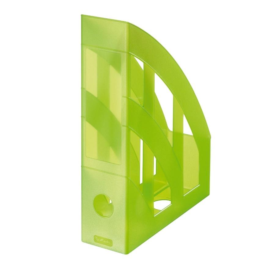 Plastikowy pojemnik na dokumenty A4, transparentny, jasnozielony.