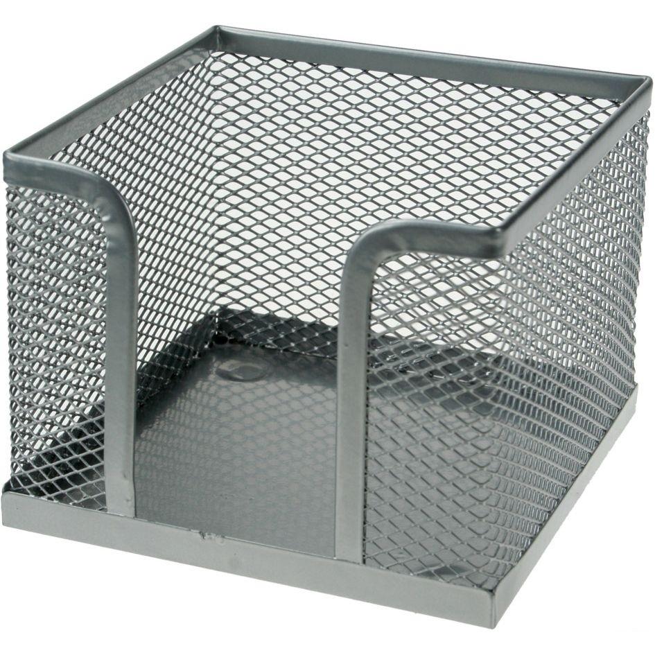 Pojemnik na karteczki - wykonany z metalowej siatki powlekanej srebrnym lakierem - wymiary: szer. 10 cm x wys. 10 cm x gł. 7,5 cm