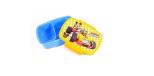 Pojemnik na śniadanie. Wykonany z plastiku - dolna część jednokolorowa, górna - wieczko z wielokolorowym nadrukiem. Zamknięcie plastikowe/zatrzaskowe podwójne na dłuższych bokach. Może służyć również do przechowywania drobiazgów. Nie jest dostosowane do podgrzewania w mikrofalówce, ani do mycia w zmywarce. Wymiary:17,5x13x6,5cm