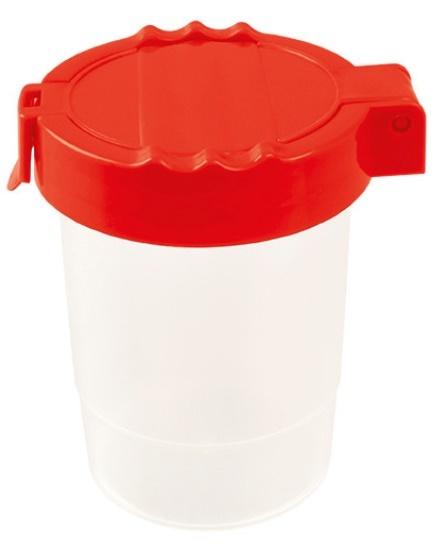 Zamykany pojemnik do płukania pędzli. Rozmiar: 6,5x8.5x9 cm. Dostępny w trzech kolorach (niebieski, czerwony, zielony). Opakowanie: folia 1 szt.
