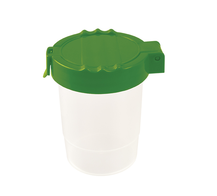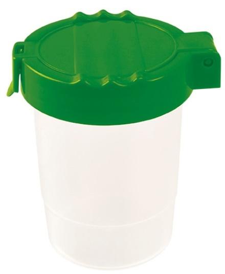 Zamykany pojemnik do płukania pędzli. Rozmiar: 6,5x8.5x9 cm. Dostępny w trzech kolorach (niebieski, czerwony, zielony). Opakowanie: folia 1 szt.