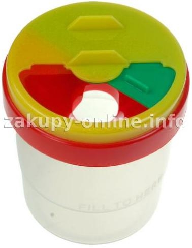 Plastikowy pojemnik na wodę. Średnica 8 cm, wysokość 10 cm. Dostępny z nakrętką w różnych kolorach.