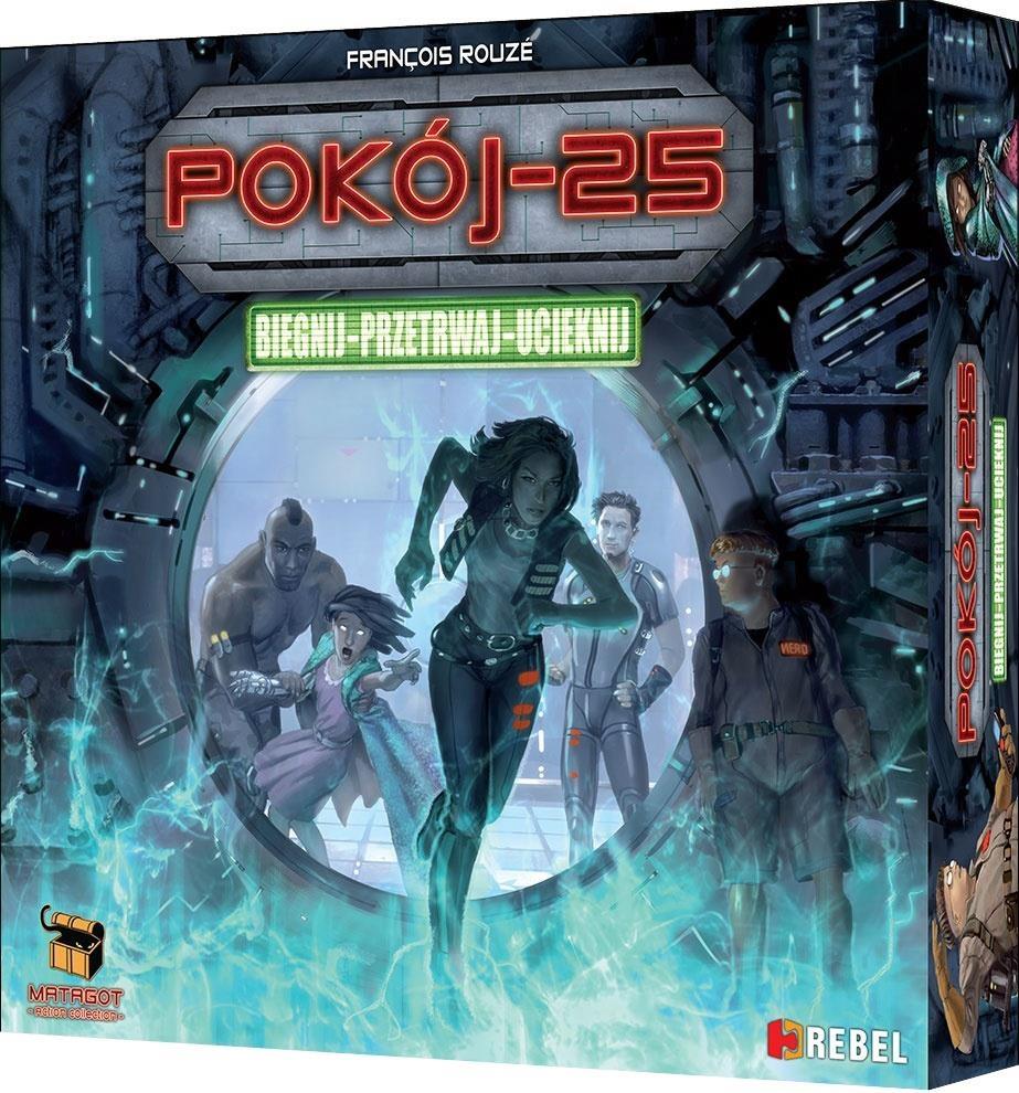Biegnij-Przetrwaj-Ucieknij! 25 pokoi, 10 rund, 4 więźniów, 2 strażników - tylko 1 wyjście... Jesteś uwięziony w budynku, w którym każde z pomieszczeń posiada czworo drzwi. Twoim celem jest odnalezienie pokoju 25, który prowadzi do wyjścia z tego koszmaru. Uważaj na strażników czekających na właściwy moment aby uderzyć. Bądź też czujny, nie każdy chce uciec z więzienia... ale kto jest zdrajcą? Gra posiada 5 trybów rozgrywki: od pełnej kooperacji po samotną grę w pasjansa. Jest to nowa, poprawiona edycja gry, różnice w stosunku do pierwszej edycji są następujące: Nowe, kolorowe figurki, Nowy wygląd planszy graczy, Nowy wygląd żetonów akcji graczy, Większe pudełko, Plastikowa wytłoczka w pudełku ułatwiająca przechowywanie elementów. Podstawowe informacje: Liczba graczy: 1 - 6 osób, Wiek: od 10 lat, Czas gry: ok. 30 minut, Waga: ok. 1.00 kg. Zawartość pudełka: 6 figurek postaci, 6 kafelków postaci,6 kart postaci, 12 znaczników postaci, 32 kafelki pokoi, 24 żetony akcji, 6 znaczników ruchu, 1 dwustronna plansza.