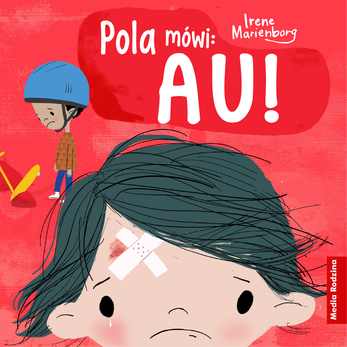 Pola to bohaterka nowej serii dla najmłodszych czytelników. Dziewczynka mierzy się z wszystkimi wyzwaniami codzienności, z jakimi spotykają się małe dzieci. Tym razem Pola próbuje nauczyć się jeździć na hulajnodze Filipa, ale niestety, przewraca się. Na czole ma teraz bolesne skaleczenie, au! Na szczęście pani Zosia ma w apteczce plaster.