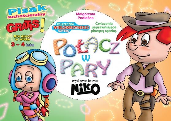 Połącz w pary to książeczka przeznaczona dla dzieci w wieku 3-4 lat. Zachęcamy w niej maluchy do rysowania po śladzie. Taka umiejętność będzie im bardzo przydatna początkowo w przedszkolu , a później w szkole, kiedy będą musiały sprostać trudnej sztuce pisania.Rysowanie po śladzie to forma ćwiczeń bardzo atrakcyjna dla dzieci, zwłaszcza, że maluchy rysują po stronach laminowanych, używając do tego specjalnego pisaka. Dzięki temu, każde zadanie mogą wykonać wielokrotnie.Poza tym, uczą się prawidłowego trzymania przyboru , doskonaląc sprawność ręki piszącej.Warto podkreślić, że wszystkie rysunki zostały tak dobrane, by rozbudzić u dzieci zainteresowanie otaczającym je światem i wspierać ich procesy poznawcze.Mogą również posłużyć do ćwiczeń w mówieniu i bogaceniu słownictwa przedszkolaków.