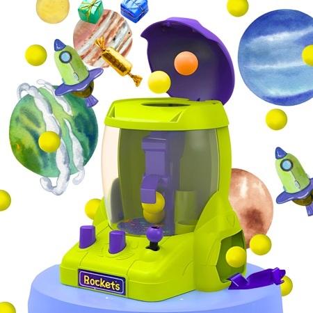 Zabawka wyposażona jest w chwytak, który pozwala dzieciom spróbować swoich sił w łapaniu ulubionych zabawek. Z przodu znajduje się panel sterowania. To idealna okazja do rozwijania zdolności motorycznych i koncentracji, jednocześnie dostarczając wiele frajdy i uśmiechu na twarzach dzieci. Maszyna wygląda jak rakieta, co z pewnością zainteresuje wszystkich fanów kosmosu, a na dodatek będzie doskonałą zabawką jako figurka.