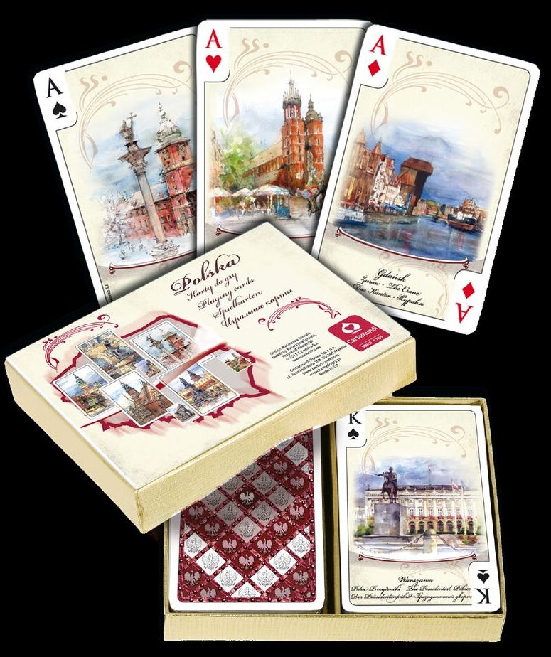 Ekskluzywny zestaw brydżowy z taliami ozdobnymi. Doskonały na prezent, idealny na pamiątkę z Polski.