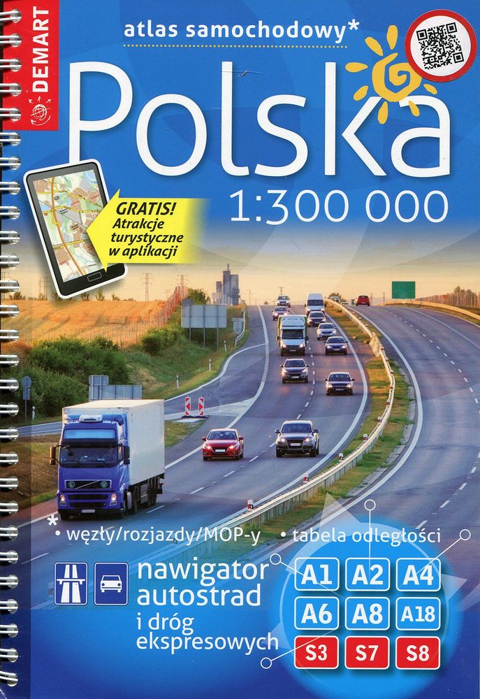 Samochodowy atlas Polski w skali 1:300 000 to wielokrotnie wyróżniana publikacja przeznaczona dla kierowców. Oprócz aktualnej mapy z treścią dostosowaną do potrzeb prowadzących pojazdy taką jak np. sieć dróg z numeracją, lokalizacja czarnych punktów czy miejscach prawdopodobnej kontroli radarowej zawiera również wiele innych dodatkowych informacji. Do najważniejszych należą najcenniejsze zabytki zaznaczone i opisane bezpośrednio na tej mapie. Ponadto atlas wyposażono w:- przeglądową mapę Polski w skali 1 : 1000000 służącą do planowania podróży,- 20 planów przejazdowych miast,- mapy z miejscami tworzenia się korków i proponowanymi objazdami,- rysunki i opis znaków drogowych,- instruktaż udzielania pierwszej pomocy,- wzór wspólnego zgłoszenia wypadku, - wykaz numerów telefonów alarmowych oraz - skorowidz miejscowości przedstawionych na mapie w skali 1 : 300000.