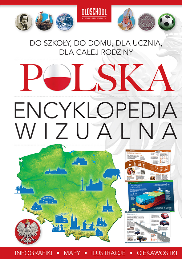 Jeden obraz jest warty więcej niż 1000 słów! Najnowsza publikacja OldSchool "Polska. Encyklopedia wizualna" to świetna pomoc do domu, do szkoły, dla ucznia i całej rodziny. To nowatorskie kompendium wiedzy o naszej ojczyźnie, zobrazowane efektownymi infografikami, planszami i wykresami. Stanowi zarówno praktyczną ściągawkę w nauce na każdym poziomie edukacji, jak również miłe dla oka źródło wiedzy i ciekawą lekturę. Zalety: • Pierwsza na polskim rynku unikalna publikacja encyklopedyczna w formie profesjonalnych infografik • Aktualne statystyki i rankingi dotyczące najróżniejszych aspektów życia Polaków, uporządkowane w 10 działach • Ilustracje niosące wartość poznawczą i edukacyjną, a nie tylko zdobniczą • Treść napisana ciekawie i przystępnie • Najważniejsze informacje zaprezentowane w prosty i czytelny sposób • Dużo atrakcyjnych wykresów, ikonek, zdjęć ułatwiających przyswajanie treści • Publikacja dla każdego: przede wszystkim dla ucznia, ale także rodzica, osoby ciekawej świata • Znakomita również na prezent! OLDSCHOOL: NAUKA PRZYJEMNA JAK NIGDY! Spis treści: - informacje podstawowe - warunki naturalne - ludność - gospodarka - ustrój polityczny i organizacja państwa - nauka i oświata - historia - kultura i sztuka - sport - życie codzienne - dodatek: tabele