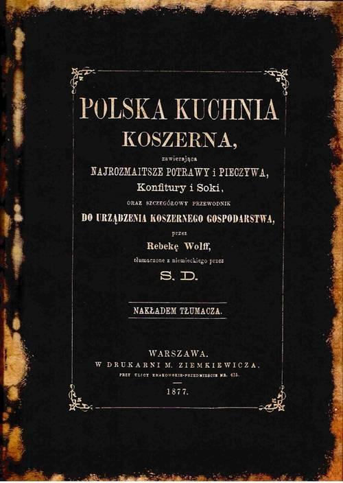 Reprint wydania z 1877 r. Tytuł w całości brzmi: Polska kuchnia koszerna zawierająca najrozmaitsze potrawy i pieczywa, konfitury i soki, oraz szczegółowy przewodnik do urządzenia koszernego gospodarstwa przez Rebekę Wolff, tłumaczone z niemieckiego przez S.D. nakładem tłumacza, Warszawa, 1877 "" Wstęp najlepiej prezentuje wartość tej unikatowej pozycji. ""Wychowana w domu dobrym i koszernym i będąc przeszło 28 lat gospodynią, postanowiłam sobie przyjść w pomoc paniom Izraelitkom, chętnie pragnącym zadość uczynić wymaganiom gastronomicznym, a jednak nie chcącym zerwać ze swoją religią i tradycją. Dziełko niniejsze, często w oryginale przeze mnie używane, przetłumaczyłam na język ojczysty. Zawiera ono przepisy najdelikatniejszych, również jak i najzwyczajniejszych potraw, mięsnych i mlecznych, przepisy na różne pieczywo, konfitury, soki, galarety, kremy, sosy itp., wszystko przyrządzone w sposób koszerny. Kierując się tą książką, niewiele należy dołożyć starania, ażeby tanim kosztem dom koszerny w porządku utrzymywać. Tak szczegółowo obeznana jestem z tą książką, iż jestem przekonaną o akuratności zawartych w niej przepisów i śmiało polecam ją naszym paniom postępowym, jako też i zachowawczym, jako mogąca zaradzić we wszelkiej okoliczności tyczącej się gospodarstwa""