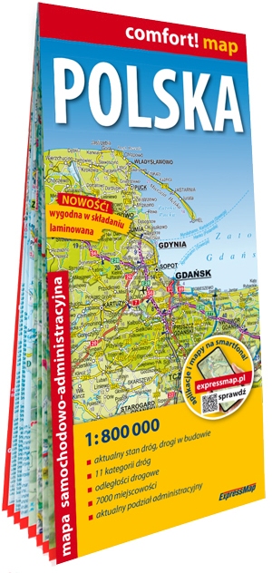 Polska; laminowana mapa samochodowo-administracyjna 1:800 000