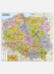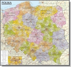 Solidna, oprawiona w listwy ścienna mapa Polski, na której zaznaczono szczegółową i aktualną sieć drogową, wraz z numeracją i odległościami w kilometrach. Dzięki kolorystycznemu zróżnicowaniu województw i powiatów mapa jest czytelna, dodatkowo podkreśleniem nazw wyróżniono miasta wojewódzkie, powiatowe i miejscowości gminne. Mapa jest dwustronnie laminowana, dzięki czemu jest trwała i można na nią nanosić notatki. Format: 124 x 117 cm Cechy mapy: szczegółowy i czytelny podział administracyjny, miasta wojewódzkie, powiatowe i miejscowości gminne, stan dróg 2013, 9 kategorii dróg, autostrady i drogi ekspresowe wraz z węzłami, płatne odcinki autostrad, autostrady w budowie, drogi ekspresowe i krajowe w budowie, odległości drogowe w kilometrach, szczegółowa numeracja dróg, przejścia graniczne, promy samochodowe, porty lotnicze, cieniowanie plastycznie pokazujące ukształtowanie terenu.