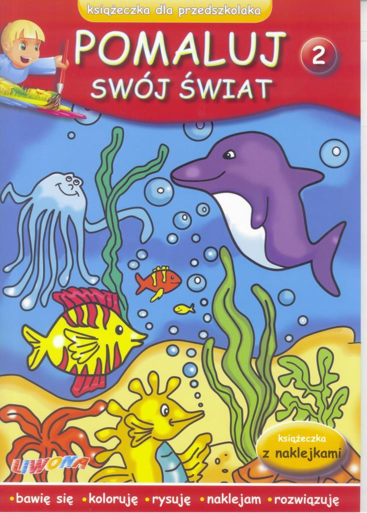 Pomaluj swój świat to seria edukacyjnych książeczek z naklejkami dla przedszkolaków. Książeczki wspomagają rozwój dziecka, a bogato ilustrowane propozycje łamigłówek przyciągają wzrok i zachęcają do ich rozwiązywania. Zestawy ćwiczeń mobilizują dziecko do koncentracji, trenują spostrzegawczość i logiczne myślenie oraz doskonalą zdolności plastyczne dziecka. Dzięki kolorowym naklejkom nauka poprzez zabawę staje się jeszcze bardziej atrakcyjna.