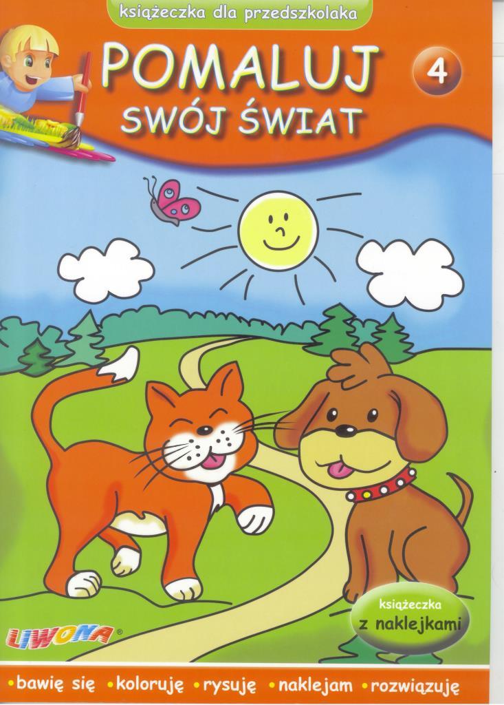 Pomaluj swój świat to seria edukacyjnych książeczek z naklejkami dla przedszkolaków. Książeczki wspomagają rozwój dziecka, a bogato ilustrowane propozycje łamigłówek przyciągają wzrok i zachęcają do ich rozwiązywania. Zestawy ćwiczeń mobilizują dziecko do koncentracji, trenują spostrzegawczość i logiczne myślenie oraz doskonalą zdolności plastyczne dziecka. Dzięki kolorowym naklejkom nauka poprzez zabawę staje się jeszcze bardziej atrakcyjna.